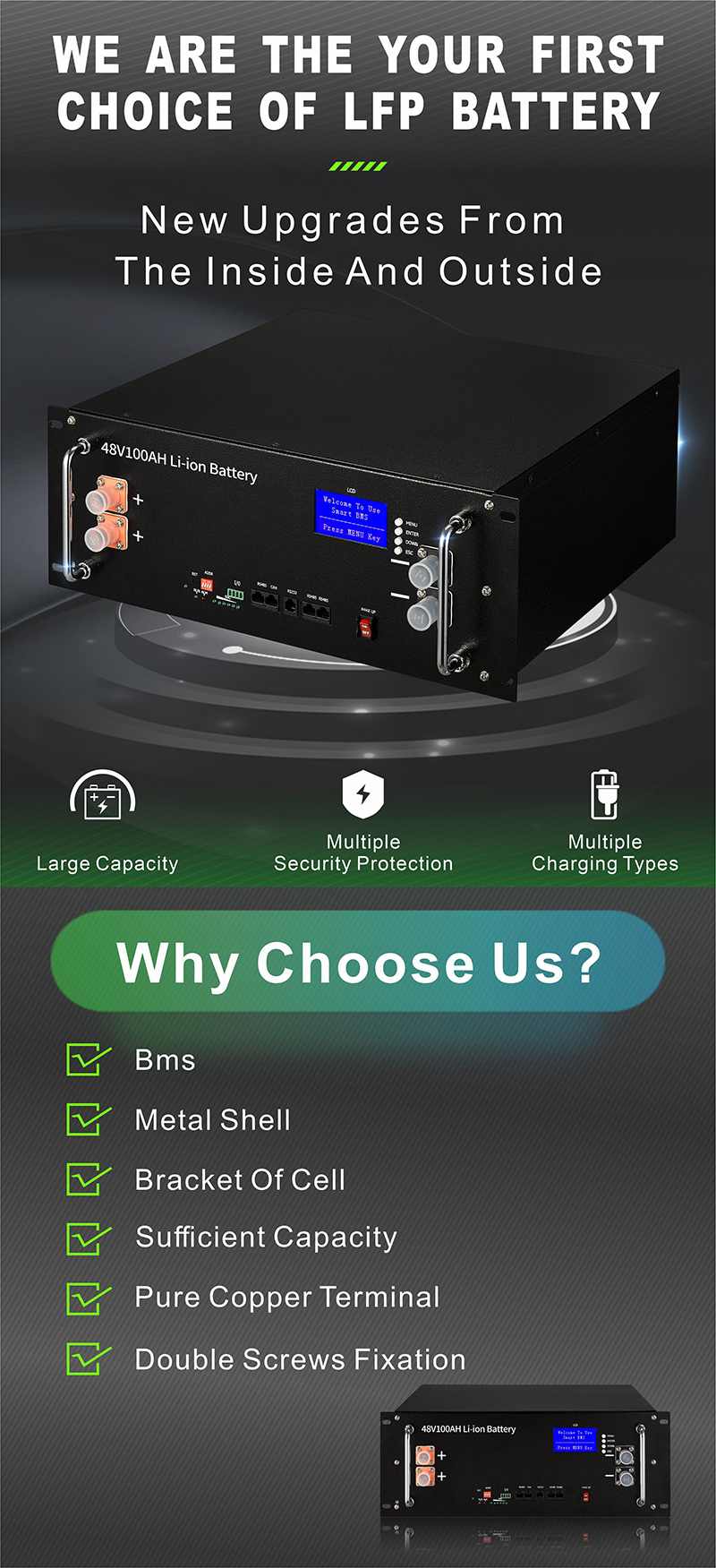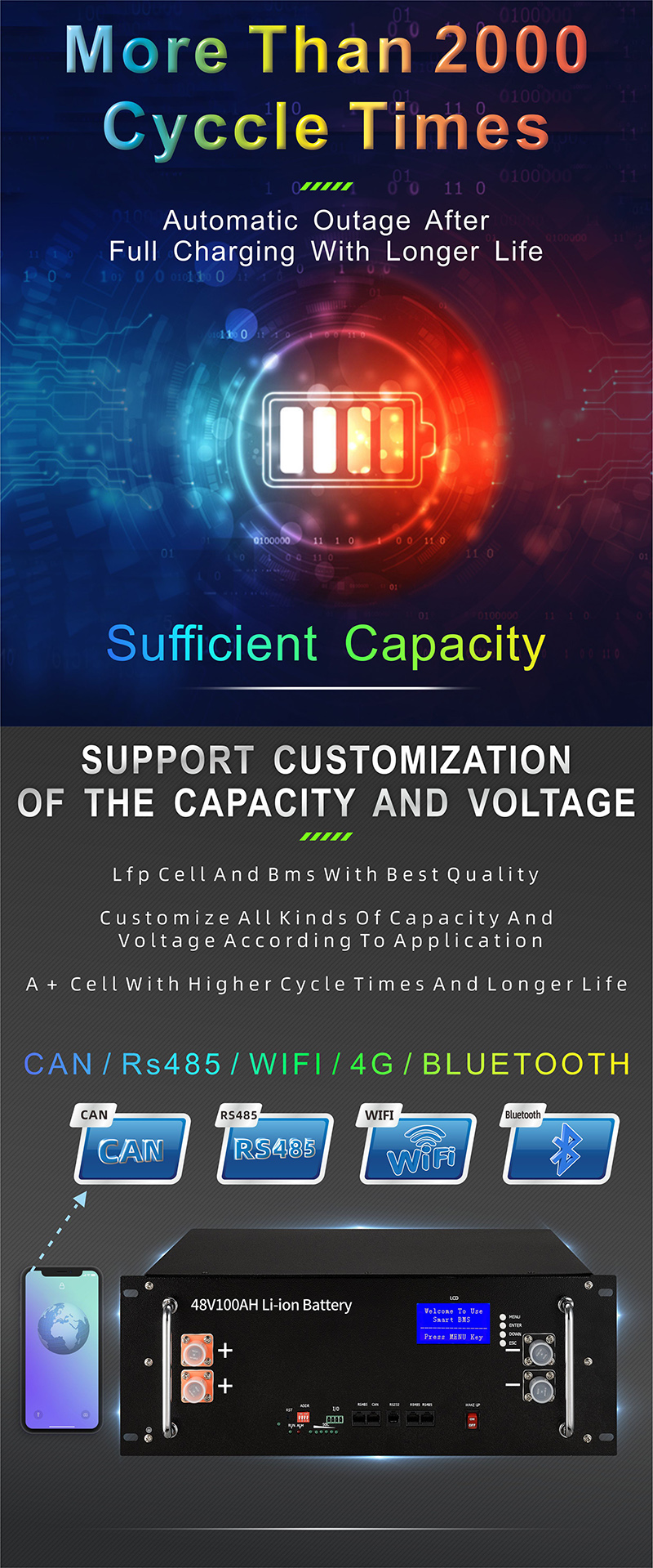 Mylion LFP48V 100Ah lithium ion batteries Solar System Lithium Smart BMS High Capacity Battery lifepo4 battery