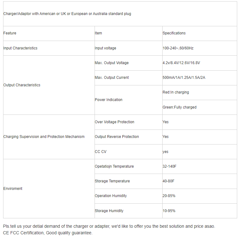 Home / Other Products / Adapter / Mylion CE certified 12.6v 1a AU,EU,UK,US adapter charger selected voltage and current 16.8v 14.8v 12v 8.4v 4.2v battery charger