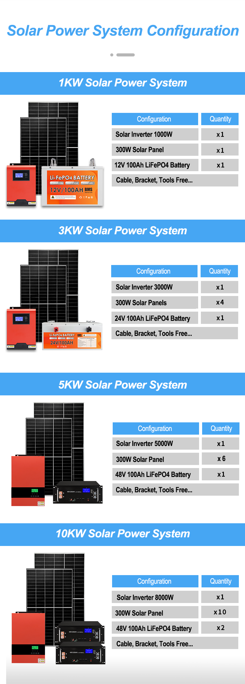 | Solar Panel | 300W*1 | 300W*4 | 300W*6 | 300W*12 |