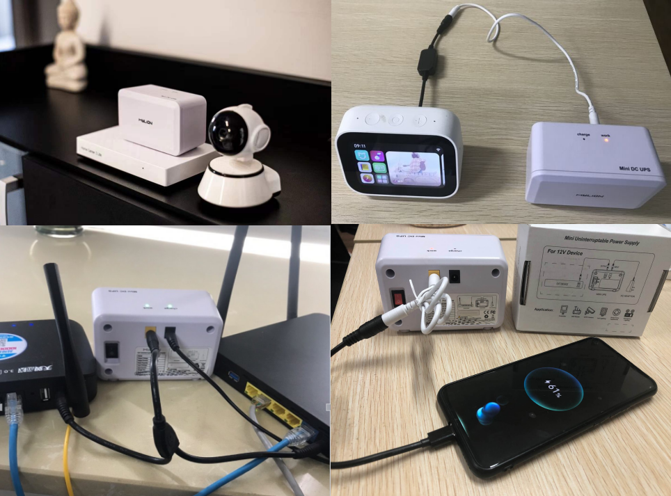 Small uninterruptible power supply for power outage, compatible with router, modem, security camera, smartphone, fax machine, fingerprint recorder, DSL, ect, and can still use the network in case of power outage.
