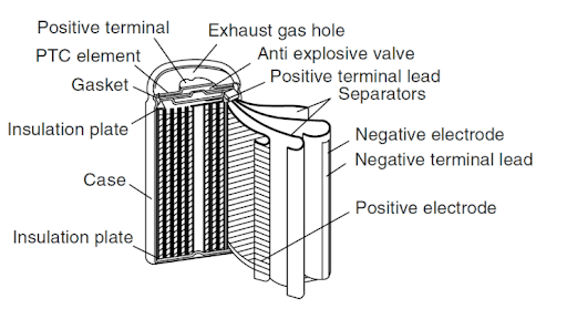 The structure of a typical cylindrical battery includes: shell, cap, positive electrode, negative electrode, separator, electrolyte, PTC element, gasket, safety valve, etc. Generally, the battery case is the negative electrode of the battery, the cap is the positive electrode of the battery, and the battery case is made of nickel-plated steel plate.