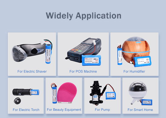 Mylion lithium battery widely application for: Electric Shaver, POS Machine, Humidifier, Electric Torch, Beauty Equipment, Pump, Smart Home